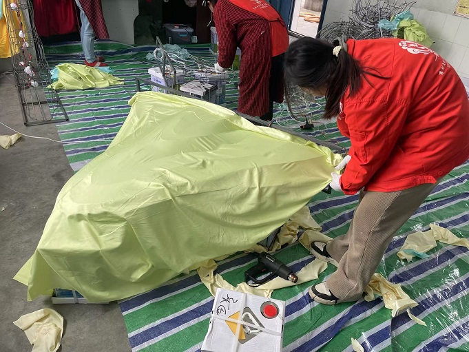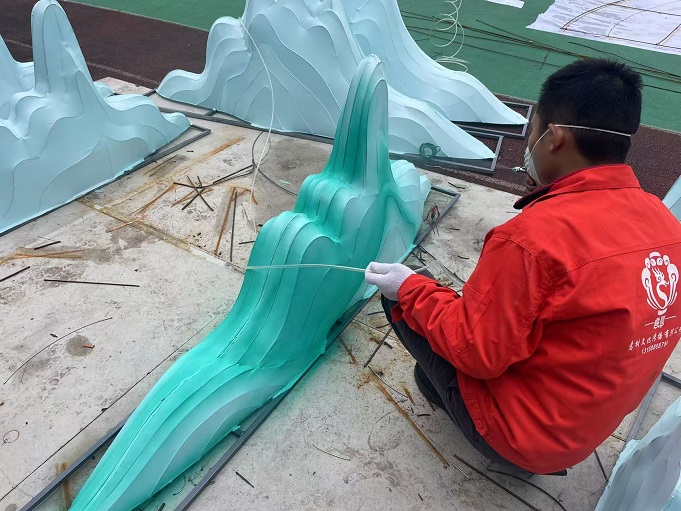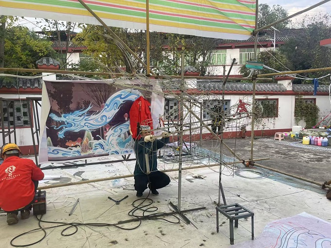 綿陽花燈制作現場條件雖然艱苦,扛著冬日的寒冷,卻熄不滅意樹團隊熾熱的工作熱情。