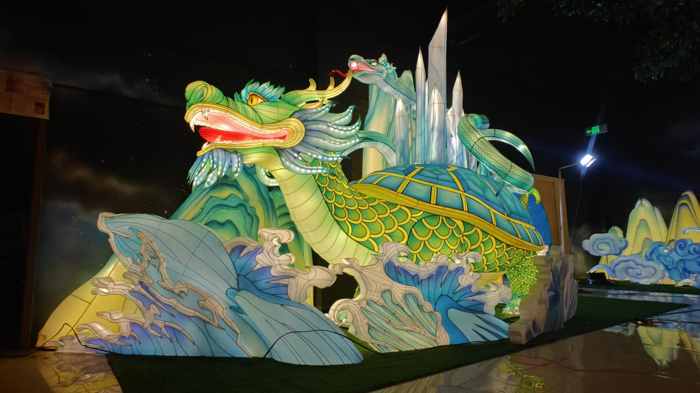 作為國(guó)內(nèi)目前規(guī)模最大的花燈展廳,意樹(shù)文化團(tuán)隊(duì)以 “還原上古宇宙” 為目標(biāo),打造出涵蓋三大主題展區(qū)的燈影秘境。從前期研讀《山海經(jīng)》《淮南子》等典籍繪制百?gòu)堅(jiān)O(shè)計(jì)圖,到組織 60 余名工匠歷時(shí) 3 個(gè)月手工制作,團(tuán)隊(duì)始終堅(jiān)守嚴(yán)苛標(biāo)準(zhǔn):焊工需保證每處骨架接口誤差不超 1 毫米,裱糊工為呈現(xiàn)神明衣袂飄逸感,需徒手拉伸絹布至精準(zhǔn)張力,美工則參照出土文物紋樣復(fù)原上古圖騰。
