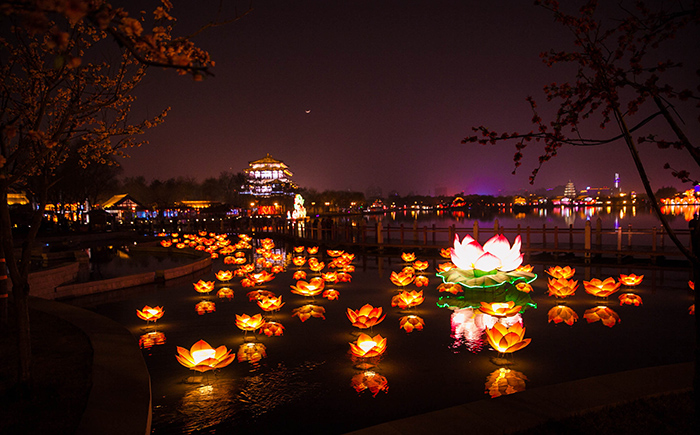 2018大唐芙蓉園第六屆新春燈會以“鼓舞中華·燈暖萬家”為主題,彩燈制作工藝精湛,時間跨度從2月3日至3月18日,將橫跨春節(jié)、情人節(jié)、元宵節(jié),將中國年的韻味融入傳統(tǒng)燈會中,讓游客能夠深度體驗“西安年·最中國”旅游主題特色。