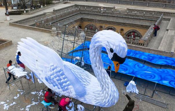 河南三門峽,陜州地坑院2019新春燈會緊張制作中,整個花燈制作工程已完成40%。