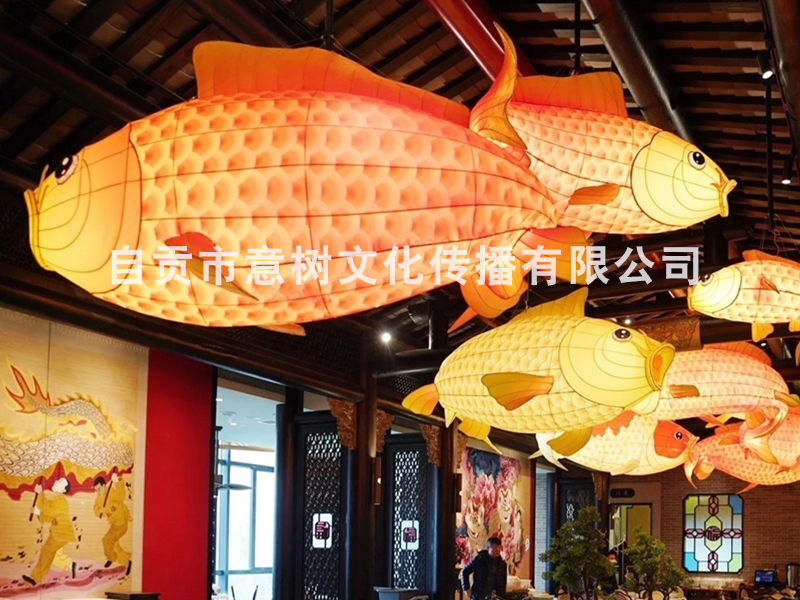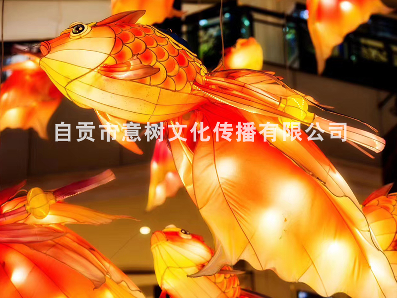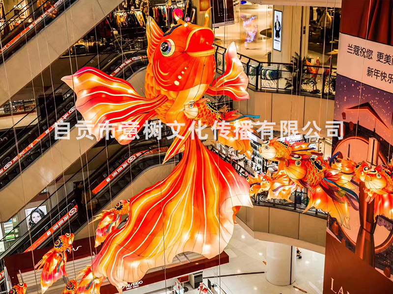 自貢市意樹文化傳播有限公司,采用獨特的絲藝造型,在形態上變化多變。經過一個月工人的努力,為重慶某個大型商場制作的中庭魚燈終于安裝落地完成,深深的受到商場領導的稱贊,也得到了商場顧客的立足觀賞、點贊。