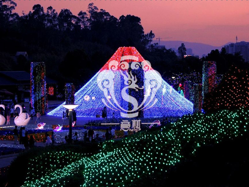 本次燈光節圍繞“夢幻”這一主題,100多組造型,占地200畝,運用3000萬盞彩燈,在綿延2公里的燈帶上進行景觀布置,構成形狀各異又個性鮮明的燈陣組合,形成壯麗唯美的燈光景致。