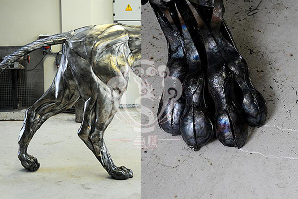 這件雕塑作品一經(jīng)完成,引來一片驚嘆。 “這兩年來,我們創(chuàng)作的最大的雕塑是高8米的變形金剛‘大黃蜂’,它是由一臺報廢的桑塔納2000整車拆解,重新組裝完成的,現(xiàn)在在常德清水湖。這個作品難度最大,我們搭建了一個3層樓高的架子,工人高空作業(yè)平衡難度極大?!?